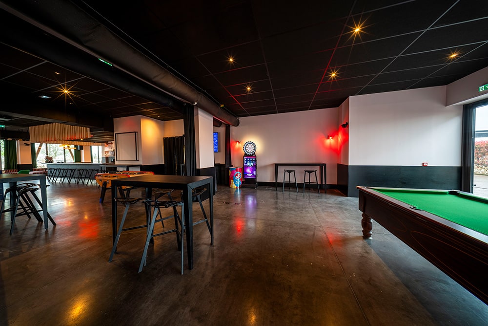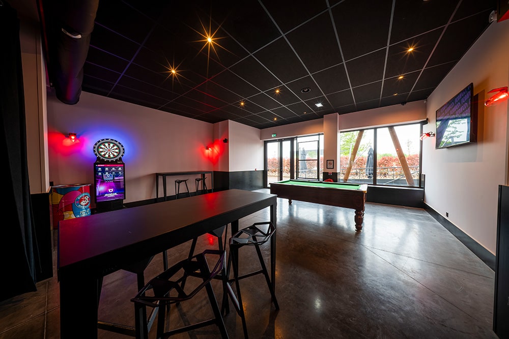 Baby-foot, boxer et fléchettes s’invitent dans votre événement pour créer des moments de détente, de complicité et de rires partagés. Que ce soit pour une pause ludique pendant un séminaire, un afterwork décontracté ou une animation informelle entre collègues, cet espace est pensé pour favoriser les échanges spontanés et la bonne humeur. Cet espace peut également être utilisé comme salle de sous commissions pour des groupes jusqu’à 50 personnes.